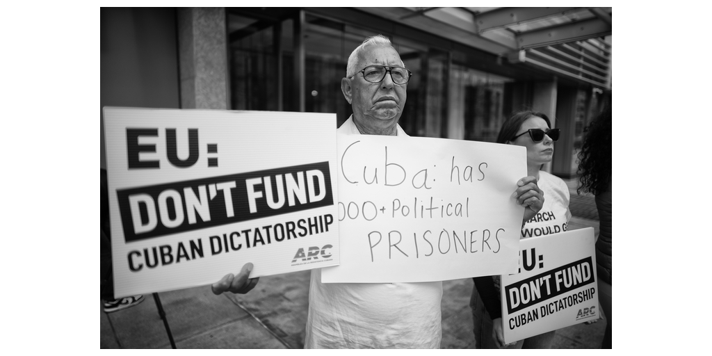 MIAMI--(BUSINESS WIRE)--Una multitud de cubanos provenientes de diversos puntos de Estados Unidos se dio cita hoy en Washington D. C., frente a la Delegación de la Unión Europea, para denunciar la complicidad de este organismo en la financiación del Estado comunista cubano, portando pancartas con lemas como "UE, no financies la dictadura", "Las democracias no deben financiar las dictaduras" y "Esta marcha me costaría la vida en Cuba".