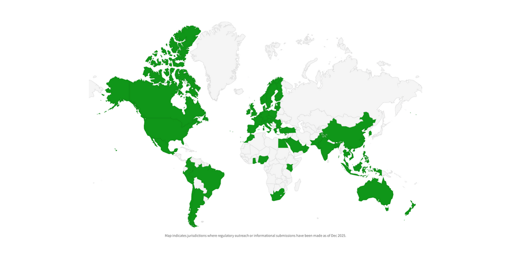 VeritasChain presentó documentación sobre VCP y VAP a 58 reguladores de 43 jurisdicciones, incluidas autoridades de Europa, Asia Pacífico, América y Oriente Medio y África. Estas presentaciones respaldan la comprensión regulatoria de la auditabilidad criptográfica dentro de marcos como la Ley de IA de la UE.